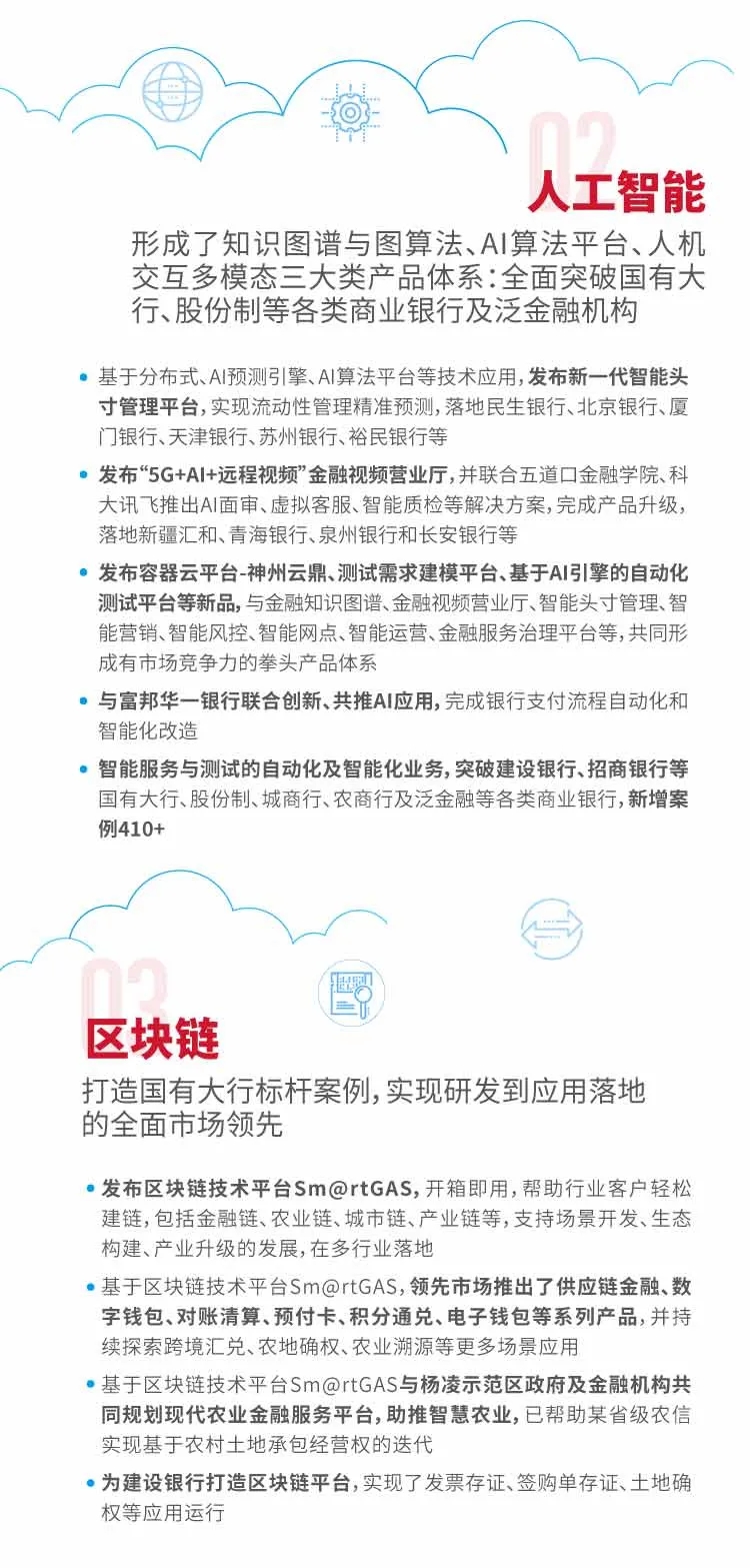 覆盖智能风控、远程视频银行等场景化产品