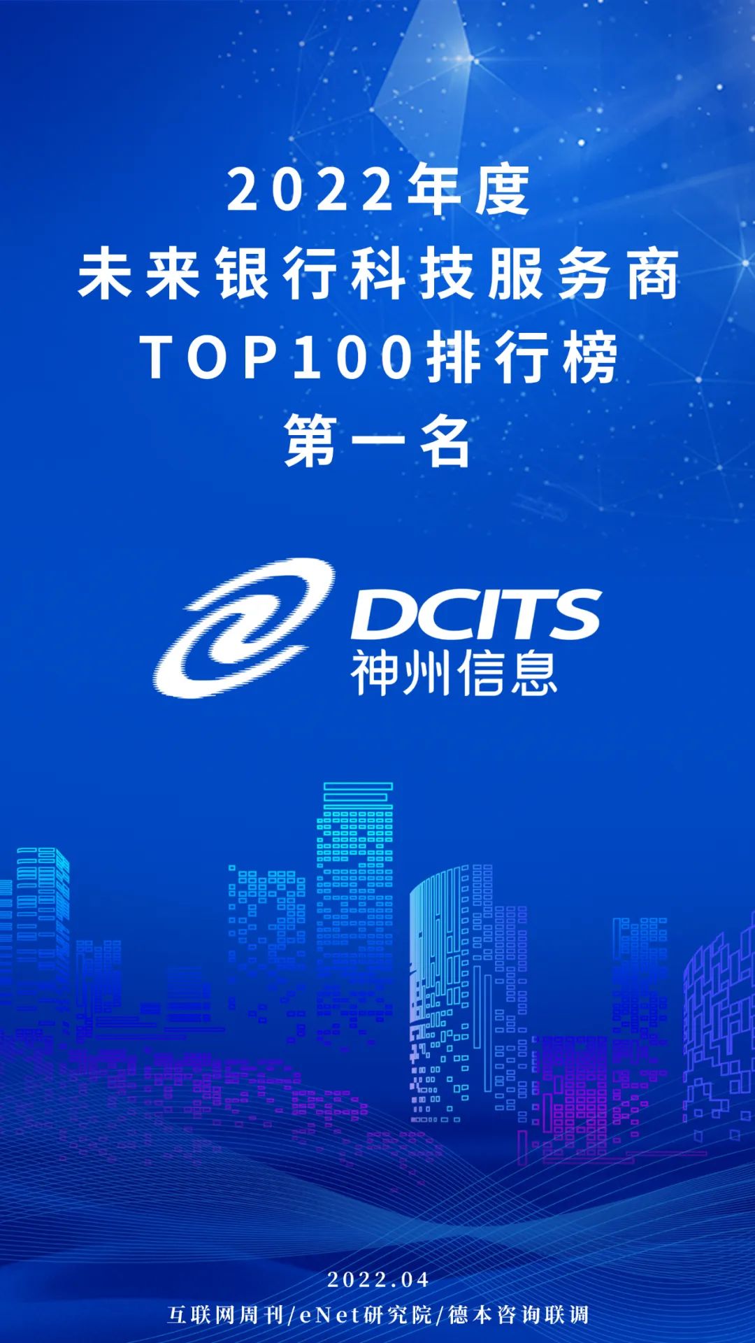 2022未来银行科技服务商100强发布,神州信息登榜首!